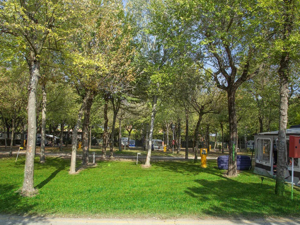 máte obytný vůz a hledáte velké stinné hřiště jen kousek od pláže a bazénu? Pozemek "A" a "B" má asi 8x8 m, přípojku na vodu, elektřinu (A - 6A, B - 10A), kanalizaci a televizní připojení. Vyhrazeno výhradně pro karavany a obytné vozy. Pro max. 7 osob.